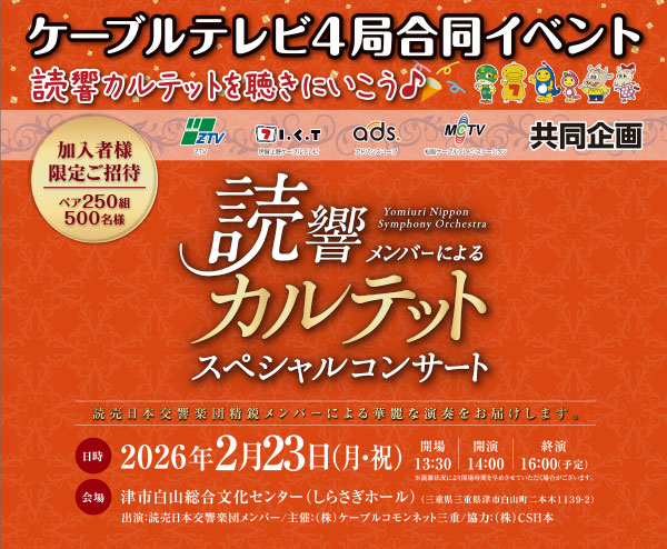 加入者確認のため、応募内容をご加入のケーブルテレビ局へ提供致しますのでご了承下さい。